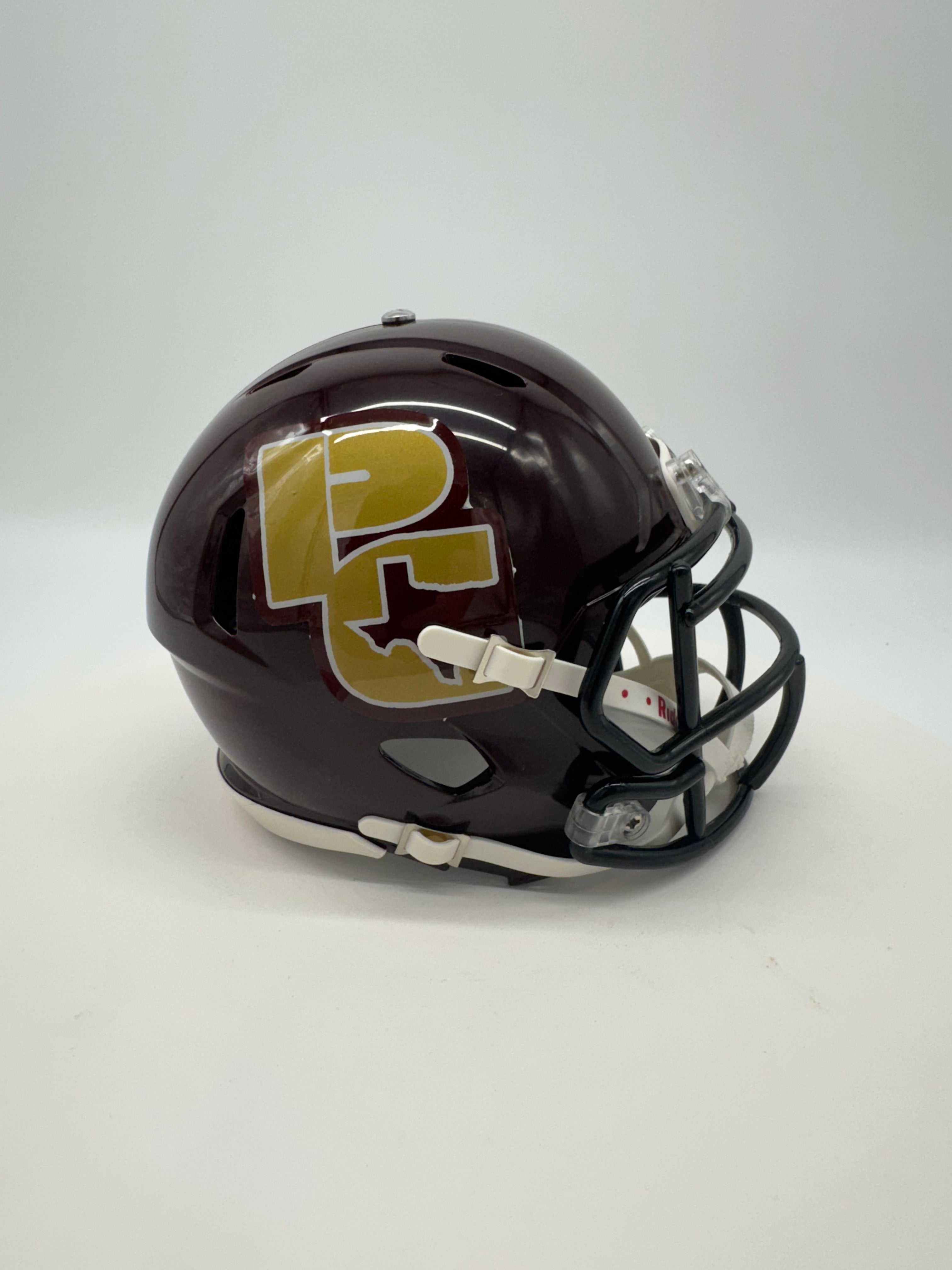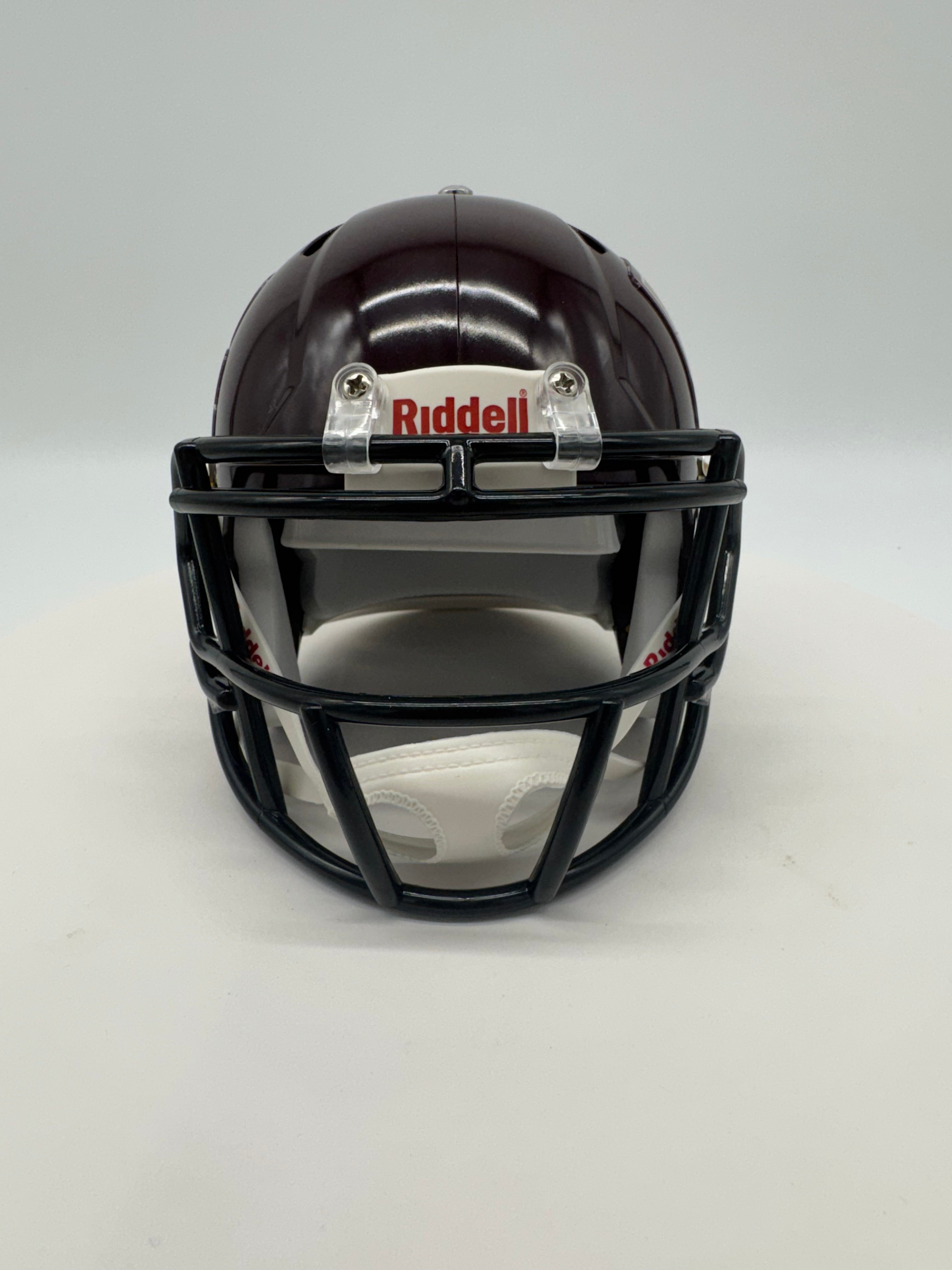 Our custom mini helmet cowbells are a great addition to your spirit shop and can help drive revenue for your booster club!  These cowbells will let your fanbase show their team pride on game night and at pep rallies. They also make a great decoration in your home or office. The process is easy. Upload your team's logo to add to the helmet. We give your custom mini helmet a mini cowbell inside to produce a custom noisemaker.  Simply grab the face mask and shake away!  As loud as a full-sized cowbell but with the customization of your team.  We sell our mini helmet cowbells wholesale to booster clubs so those organizations are able to take these custom pieces to their fanbase.  Contact us today about getting the process underway!
